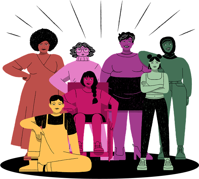 Féministes, car lutter contre le sexisme et les violences de genre pour nous, c'est ne pas oublier de lutter dans un même temps contre toutes les autres formes de violences : racisme, transphobie, homophobie, validisme, classisme, âgisme, etc. Cliquer ici pour accéder aux définitions.
